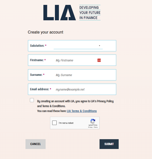 - Visit LIA’s website and click on Login (top right corner), then click on Sign up
